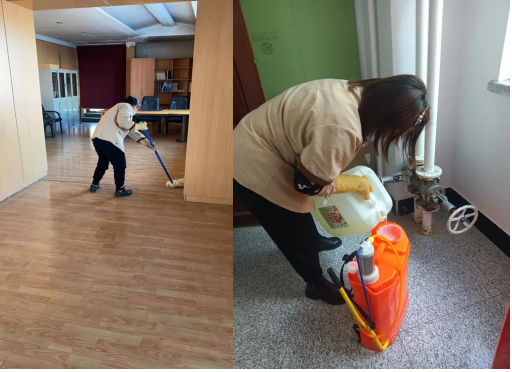疫情就是命令,防控就是责任。作为与在校师生接触密切的校园人,他们恪守“科学管理,优质服务”宗旨,科学防控、精准施策,将各项疫情防控工作落到实处、干出实效。自学校封闭管理以来,后勤管理处45名保洁员克服人员少、工作任务重、年龄大、身体状况欠佳、家庭因素等种种困难,主动留校工作,全面扛起室内外公共区域、单身教工宿舍、浴池、电梯、垃圾清运等部位消杀及保洁工作,及时有效阻断新冠肺炎疫情向校园传播蔓延。
