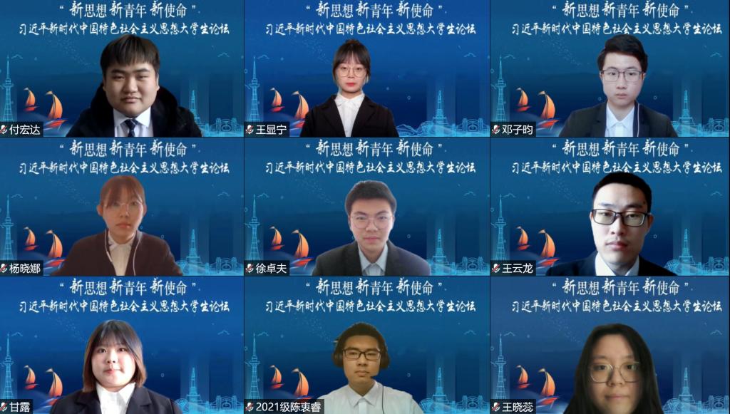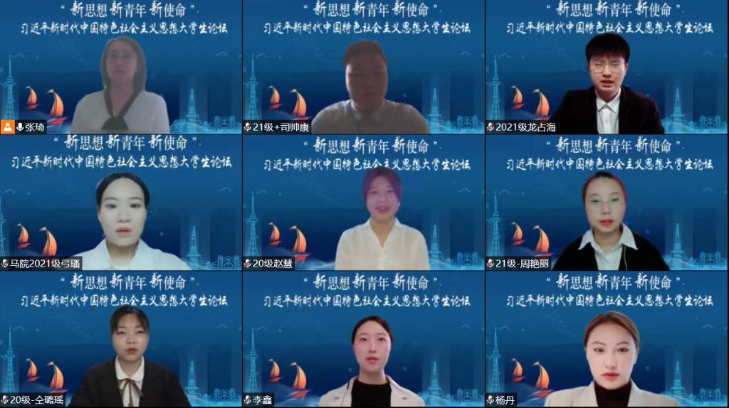 为深入学习贯彻习近平新时代中国特色社会主义思想,引领青年学生学懂弄通做实党的创新理论,从中国共产党人精神谱系中汲取奋进力量,4月16日,我校党委宣传部、马克思主义学院通过视频会议的方式联合举办了“习近平新时代中国特色社会主义思想大学生论坛”。本次论坛主题是“新思想 新青年 新使命——赓续精神谱系 砥砺奋进征程”,分为主题发言和论坛互动两个单元。党委宣传部副部长许蕾、马克思主义学院党委副书记宁晓艳,马克思主义学院研究生红色宣讲团、学校习近平新时代中国特色社会主义思想学习社团以及各学院学生代表共200余人参加论坛。论坛由马克思主义学院毛泽东思想和中国特色社会主义理论体系概论教研室主任张琦主持。