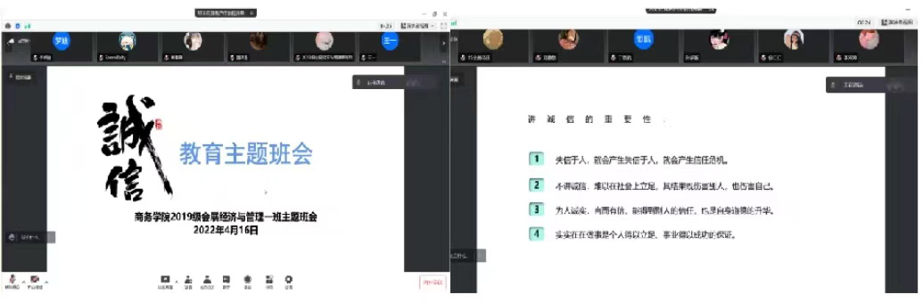 全面落实立德树人根本任务,19级工商管理二班开展了诚信教育主题班会,学生们懂得诚实守信是中华民族的传统美德,现代社会更需要诚实守信。