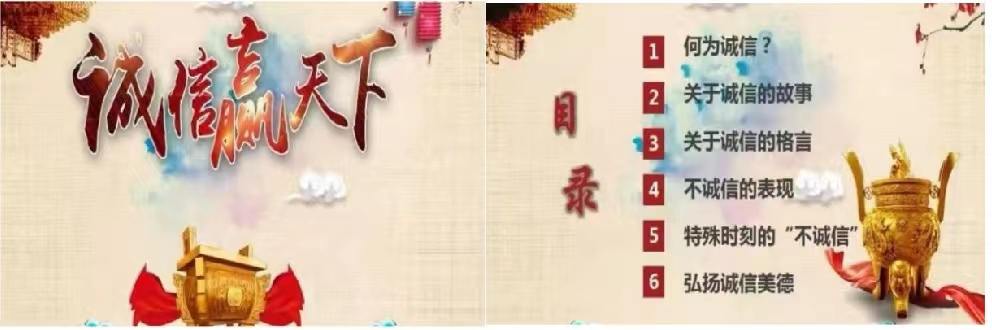 培养学生诚信品质,进一步营造以诚信为荣的良好校园氛围,引导同学们树立“诚信做人、说诚信话、办诚信事”的诚信观念。