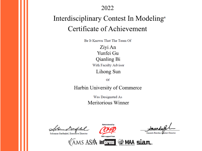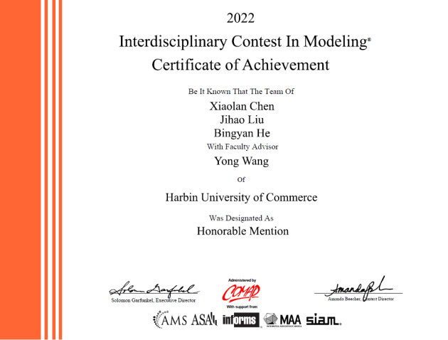 近日,2022年美国大学生数学建模竞赛成绩正式发布。我校喜获国际一等奖1项、二等奖6项、成功参赛奖22项。