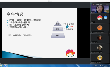 本次大赛在教务处、教学实验设备管理中心、计算机与信息工程学院的大力支持下,我校今年共有23支队伍参赛,获得一等奖3项,二等奖6项,三等奖6项的好成绩。计算机与信息工程学院安排有丰富赛事经验的老师于5月5日20点通过腾讯会议为我校晋级国赛的队伍进行线上培训工作,为6月即将到来的国赛初赛积极备战。