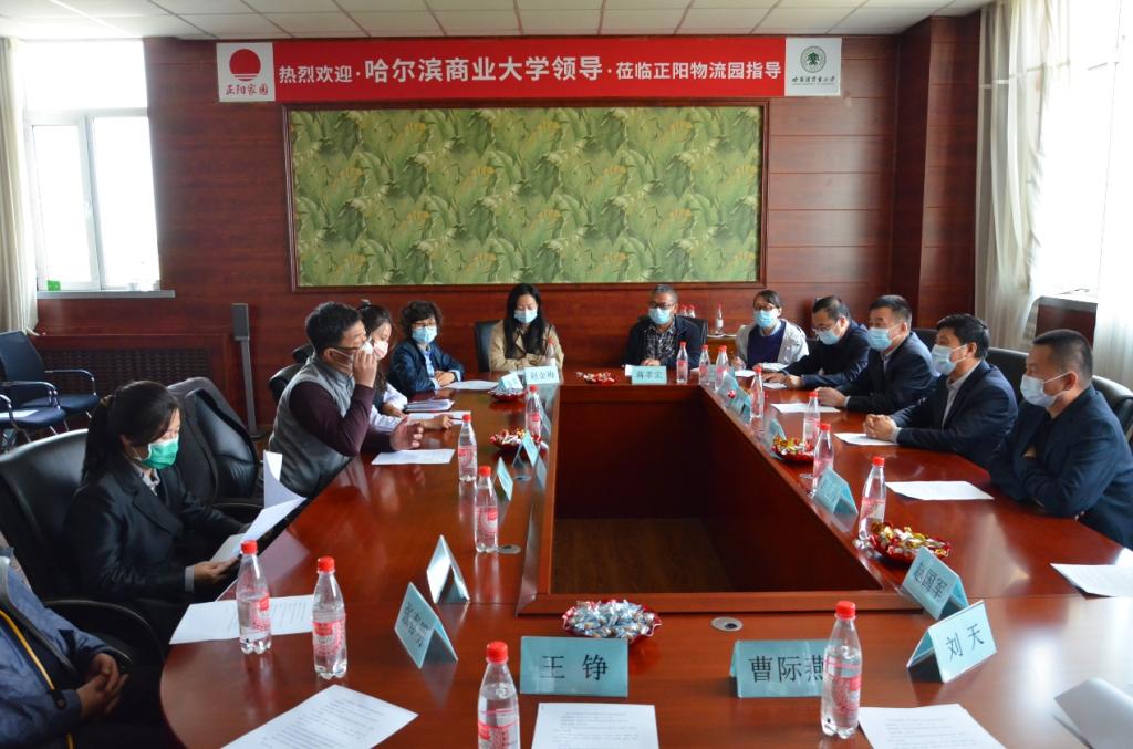 孙先民一行参观正阳物流园,了解正阳物流园企业的发展情况。随后,进行了学生座谈会,黑龙江正阳家园商贸有限公司总经理刘斌从校友角度出发,结合自身经历就如何进行职业规划这一问题为学生们作了指导,并从企业角度在如何提高个人能力方面给出了建议。