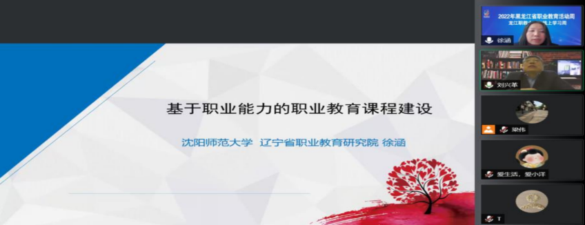 2022年黑龙江省职业教育活动周——龙江职教大讲堂线上学习周直播课从5月11日开始,历时5天。这是新《中华人民共和国职业教育法》施行后的第一个活动周。龙江职教大讲堂线上学习周直播课以腾讯会议和钉钉平台直播的方式开展,围绕学习贯彻新《职业教育法》、提质培优、职教本科、课程建设、课程思政等主题展开,并就如何落地实施等方面内容进行专题讲座与探讨,线上学习达到1500余人。