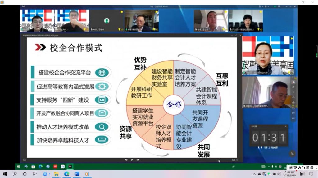 为了进一步深化产教融合、校企合作,遴选2021-2022年度中国高等教育博览会“校企合作 双百计划”典型案例,5月20日,中国高等教育学会“校企合作 双百计划”专家组对我校《数智赋能浪潮会计学院——智能会计人才培养实践》项目进行了线上走访考察。会计学院院长张劲松,会计学院副院长梁运吉、姜雪松,浪潮会计学院执行院长刘阳,以及项目组成员参加线上走访活动。合作单位代表浪潮铸远教育科技有限公司、沈阳跃客教育科技有限公司、黑龙江省农业投资集团有限公司、哈药集团人民同泰医药股份有限公司等通过场外连线的方式参加活动。