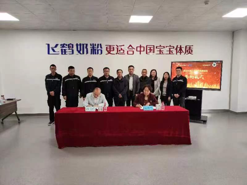 郑秋鹛与肖光辉签订校企合作框架协议。我校向飞鹤推荐了11名应届毕业生,并邀请飞鹤的优秀校友回校交流。
