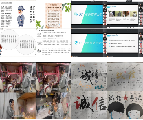 金融学院依托专业特色,开展“依托商业文化馆,传承诚信文化”诚信讲堂和主题讲座,着力营造“人人讲诚信、事事重诚信、处处有诚信”校园文化氛围。学院的校园诚信文化建设主题系列活动分为主题团日活动、座谈会、诚信主题情景剧征集、主题知识竞赛、诚信签名承诺活动。“倡导诚信教育、拒绝非法传销”主题团日活动以宣传诚信的重要性和非法“校园贷”的危害性为主要内容,使广大学生深刻了解诚信的本质和内涵,诚信与道德、诚信与学生成才的关系,教育引导践行诚实守信良好品行。学院各团支部开展“倡导校园诚信、疫情诚信、拒绝非法传销”主题座谈会,通过座谈的形式,使同学们对诚信考试、诚信遵守疫情防控及抵制非法传销等知识有了更加深刻地了解,使诚信意识入脑入心。征集诚信主题情景剧,丰富教育形式,增强教育效果,学院面向全院师生征集诚信主题短视频,作品内容包括非法“校园贷”、电信诈骗、校园诚信等,通过活动让同学们受到丰富多彩、形式多样的诚信教育,切实体会到诚信教育的价值与意义。学院以班级单位开展“普及知识,铸就诚信”主题知识竞赛活动,进一步提升学生的道德认知,加强诚信建设,养成诚信待人、诚信处事、诚信学习、诚信立身的品德和行为,学院还组织金融学子在诚信条幅和诚信海报上签字承诺,承诺办诚信事,做诚信人。