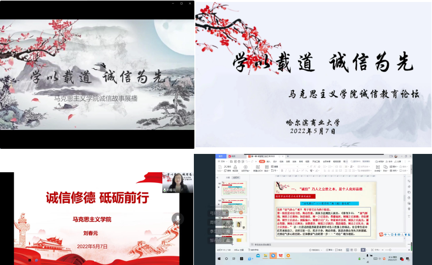 基础科学学院举办学院“诚信大讲堂”,结合新闻专业特点,邀请优秀校友黑龙江广播电视台融媒体中心首席联络官葛先涛为新闻学专业学子作《从媒体融合看新闻职业素养的重要性》专题报告。开展诚信教育教学课件展示及优秀主讲教师推荐,推荐3名“大学生诚信教育”课程建设优秀主讲教师参加学校评选活动,分别为赵伟东《广告创意与文案写作》、陈广宁《经济新闻报道》、苗秀凤《概率论基础》。开展“音乐讲堂:用音乐展示诚信典范”,学院青春初心艺术团组织编排了诚信音乐宣传作品《说到做到》,集中展示诚实守信模范典型群像,讲诚信故事,听诚信声音,汇聚有声有色正能量。开展“书画讲堂:用笔墨弘扬诚信美德”,通过线上线下相结合的形式,面向全院师生征集“诚信”主题作品,活动旨在用文字书法、绘画海报等创作作为载体,讲述诚信故事。开展“云上讲堂:用云端班会讲述诚信案例”,学院各团支部开展以诚信教育为主题的班会活动,通过宣传宣讲电信诈骗、非法“校园贷”、非法传销等典型案例的防范与对策,引导学生诚信做人。学院依托“FM基础之声”,开展“征信云课堂——宣传诚信之高尚”“诚信之星评选——传递诚信之品质”活动,号召基础学子一起学习诚信,践行诚信。