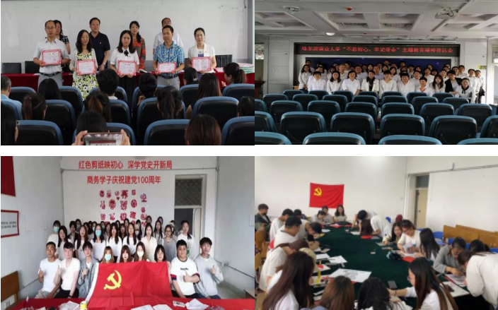 涌现出一批优秀学生榜样,有获得美国大学生数学建模竞赛国际一等奖的2018级学生李志群,有河南省防汛救灾优秀志愿者代表2000级学生杨广乐,有见义勇为道德风尚标兵2017级学生王昊,有“全省抗击疫情先进个人”的姐妹花2017级学生于梦瑶、获得“黑龙江省第十届优秀青年志愿者”2019级学生李双帅等先进典型。在疫情防控中,广大师生党员和共青团员勇挑重担,筑起众志成城、同舟共济的生命防线,这些由党员和团员组成的志愿者们在疫苗接种、核酸检测、为隔离学生送餐、校园巡查中,用真心真情筑牢疫情防控严密防线,用实际行动践行共产党员和共青团员的初心和使命。为丰富教职工的业余文化生活,学院工会先后组织开展了“商务学院首届劳动技能大赛”、“快乐行走,健康徒步行”、趣味运动会等喜闻乐见的活动,学院的向心力和凝聚力不断增强。商务学院党委在建党100周年之际,获得了“先进基层党组织”的称号。