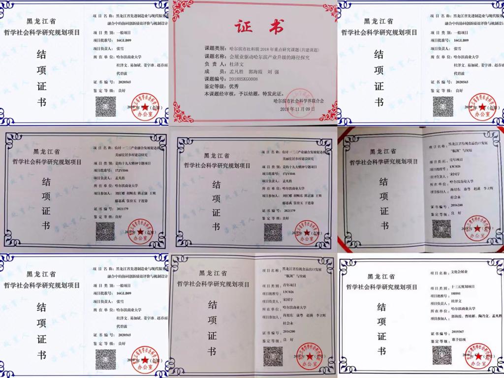 科学研究成果丰硕。近5年来,先后主持或参与国家级及省部级各类科研课题40余项,包括国家自然科学基金项 2项,国家社会科学基金项目2项;省科技攻关项目2项;省自然科学基金项目3项;省经济社会发展重点项目2项,省哲学社科规划项目18项;省博士后基金项目4项、厅局级项目8项;主持横向课题7项;在《南开管理评论》《科研管理》《管理评论》《农业经济问题》等国家自科委认定的A类期刊和CSSCI期刊发表论文40余篇;出版专著11部,荣获中国商业联合会科技进步一等奖、全国中餐科技进步特等奖、全国科技评价学术研讨会优秀论文、黑龙江省社会科学优秀成果三等奖、黑龙江省高校人文社会科学优秀成果一等奖等多项省部级科研奖励。