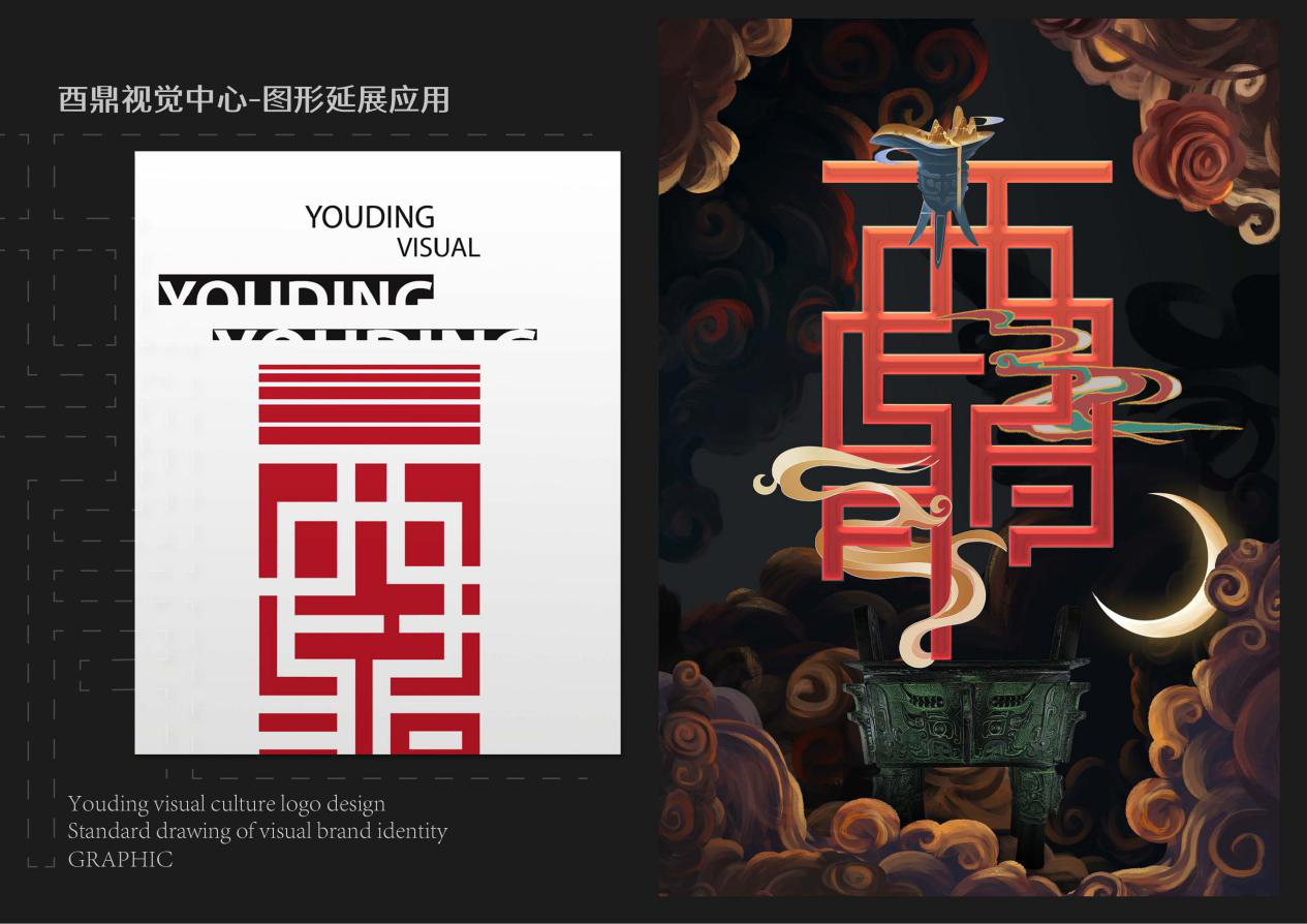 曹文鼎在设计中主要利用文字和图形的变形创意,通过对于“酉”和“鼎”两个字的重构,采用直线条形态进行设计。酉时是地支的第十位,而酉字的另一层含义象征着成熟和稳重,鼎为中国古代的器物,同样寓意着繁荣昌盛,“《酉鼎》品牌形象设计”的名称灵感来源于此,酉时成熟,鼎为繁荣,代表着传承和弘扬中华优秀传统文化与坚定文化自信。