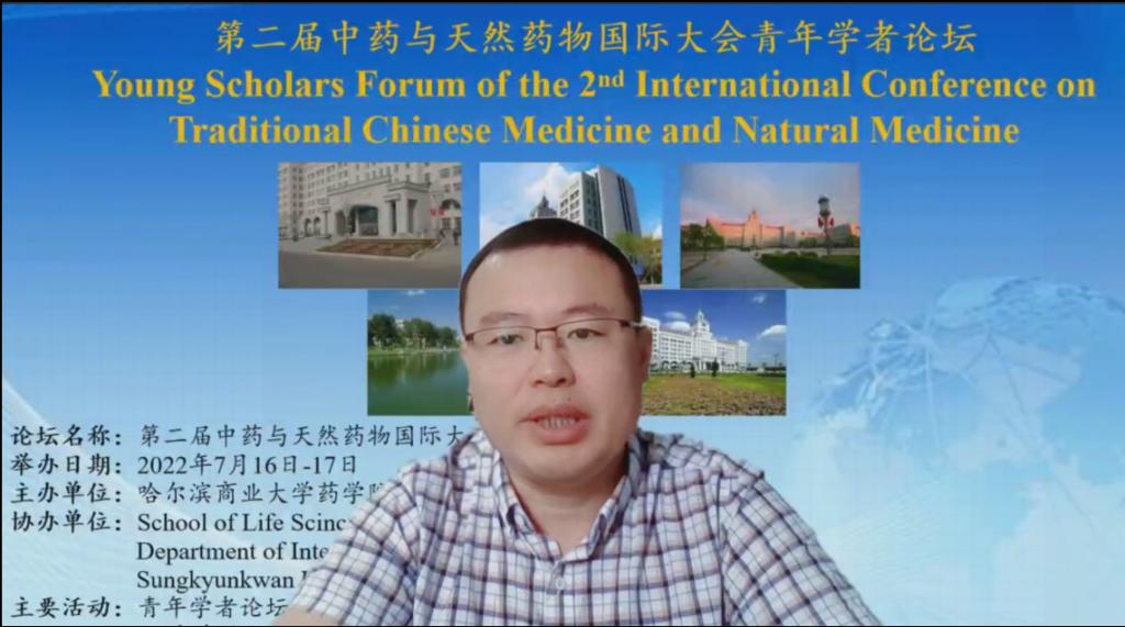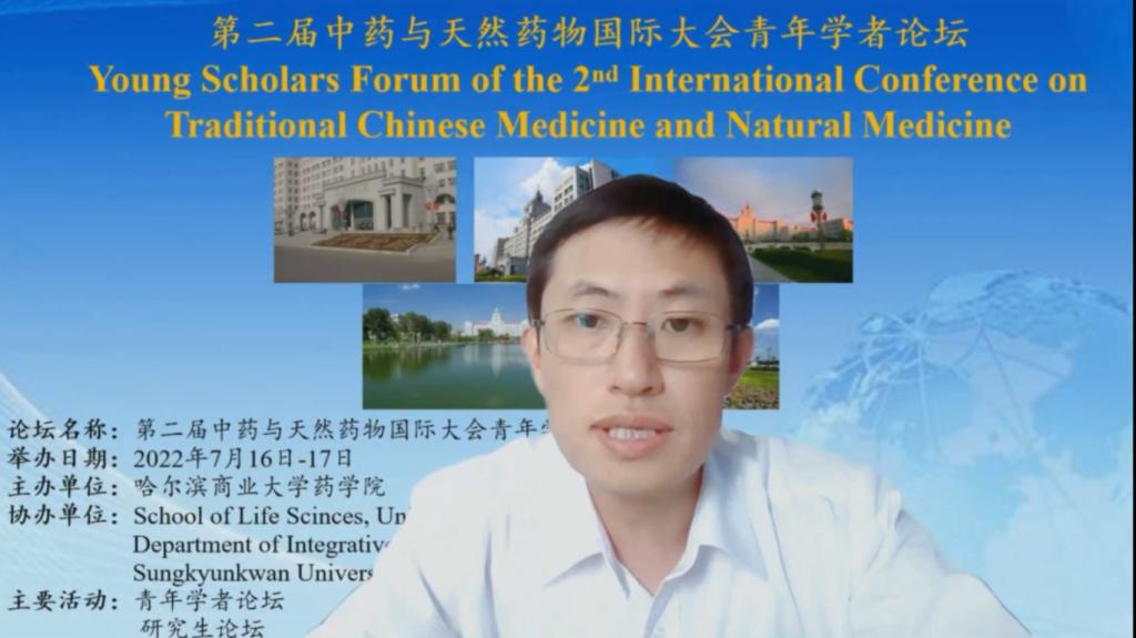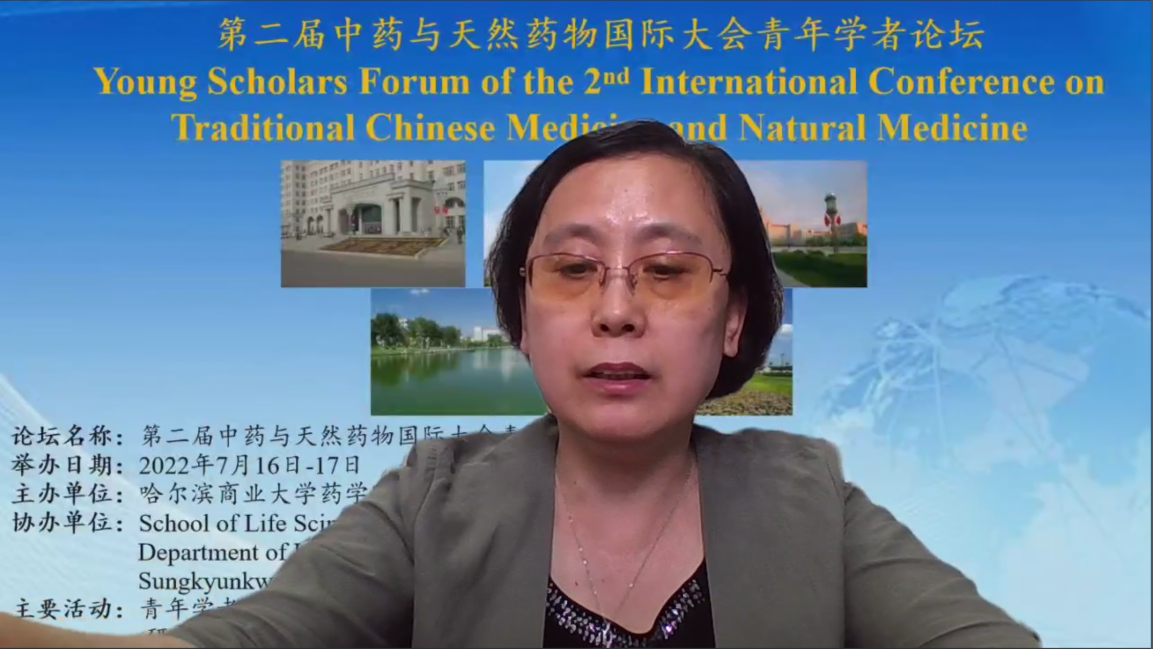 夏日迎盛会,群贤聚冰城。在哈尔滨商业大学全校师生共迎商大七十华诞之际,近日,由我校药学院主办,英国萨塞克斯大学、韩国成均馆大学协办的“第二届中药与天然药物国际大会”通过线上召开,大会分为“青年学者论坛”和“研究生论坛”专场。我校副校长赵大伟教授,药学院院长李文兰教授出席会议并致辞。来自我校和英国萨塞克斯大学、韩国成均馆大学、北京大学、上海交通大学、澳门大学、中国医学科学院药用植物研究所、北京中医药大学、沈阳药科大学、哈尔滨医科大学、黑龙江中医药大学、潍坊医学院等12所国内外高校的青年学者及硕博研究生参加论坛并作报告。药物工程技术研究中心副主任邹翔研究员主持论坛。