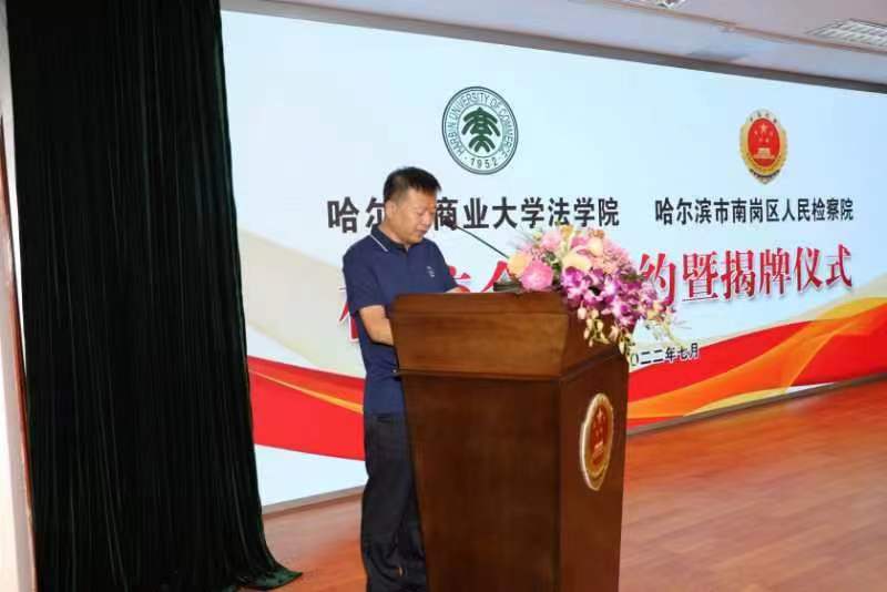 徐晓光在致辞中表示,南岗区人民检察院与哈商大法学院开展检校合作,是检察机关与高校加强合作共建的良好开端,希望通过检校合作促进检察实务与法学教育的良性互动,推动法学理论研究与司法实践共同发展。