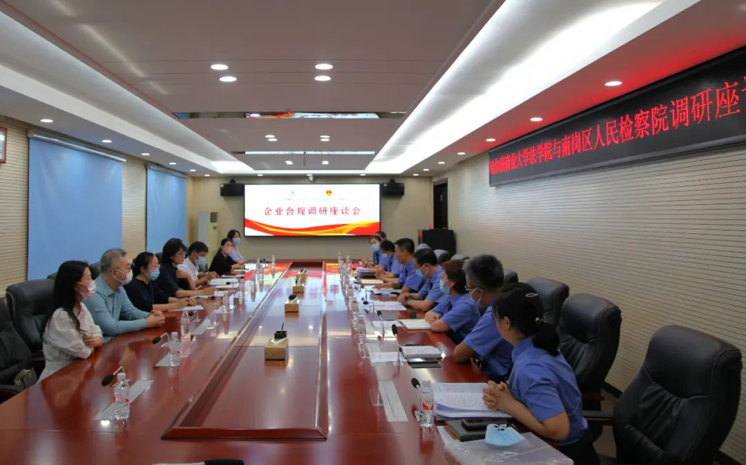 签约仪式后,法学院教师代表与南岗区人民检察院干警就企业合规检察理论与实务问题开展座谈交流。