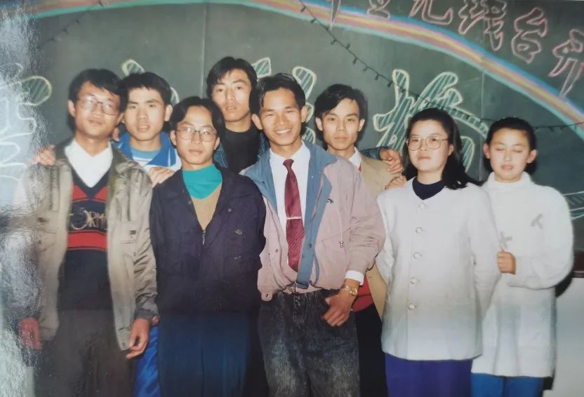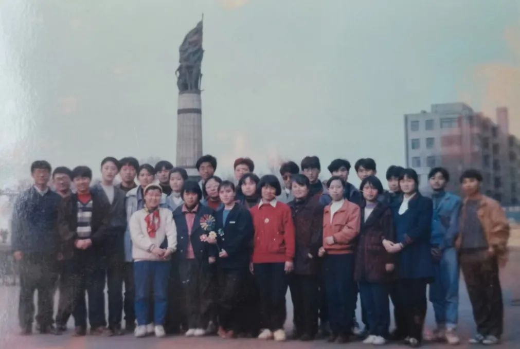 后来九四级新生入学,广播站又招进来一批新人,有叶青、程斌、杨乐、满浩宇、靳永凌、刘健、王更军、于燕、刘晓娟、王沛荣、何靖昕、尹雅兰、高宁、韩春和包力,把“校园之声”改名为“共青团之声”,于是“共青团之声”广播站又开始在校园内响起来了。一九九四年冬季,广播站第一次组织全学院范围的庆祝活动,并进行了文艺演出,于是就有了下面这张全家福。