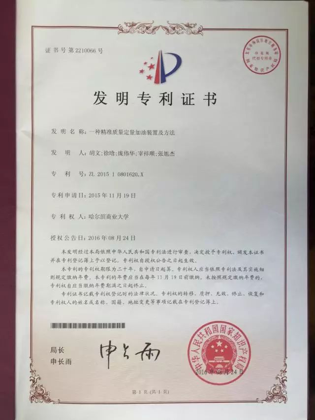 1988年,该科研团队还承担了中国石化销售公司《加油站微机控制管理系统》科研项目,选择哈尔滨庆丰加油站作为项目试点单位,首先在哈尔滨庆丰加油站安装电脑加油机及加油站微机控制管理系统,经过1个月安装调试,解决断电数据保护、采用温度密度补偿算油品质量、质量定量加油精度、电脑加油机与管理计算机联网、电脑控制器低温运行等难题,电脑加油机及加油站微机控制管理系统投入试运行,最终研制出国内首台电脑加油机及加油站微机控制管理系统。电脑加油机项目获得哈尔滨市计量检定试验所授予的鉴定证书和电气部分防爆鉴定证书。