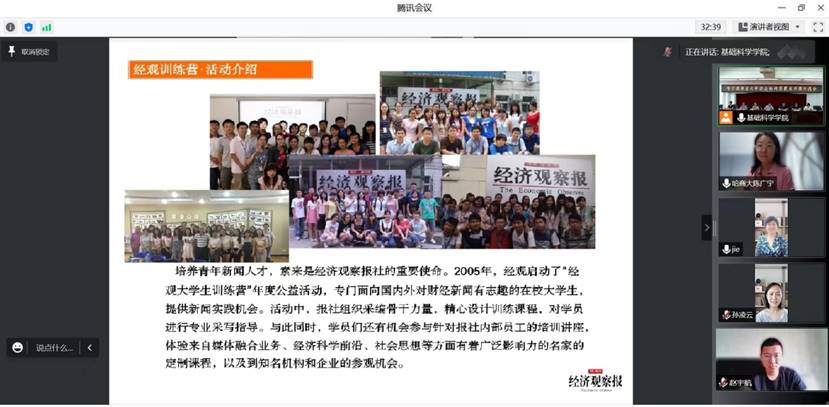 为贯彻落实党中央、国务院关于高校毕业生就业工作决策部署,进一步扩大毕业生就业渠道、开拓就业岗位,按照学校“访企拓岗促就业”工作部署,近日,副校长李景义带领基础科学学院领导班子及相关工作人员,对经济观察报社、山东金文教育集团等用人单位开展“访企拓岗促就业”线上走访活动。会议分别邀请经济观察报社社委会委员、副社长孙凌云,人力资源部兼办公室主任张洁,山东金文教育集团董事长王远亮及金文实验高级中学副校长李波、陈来增等共同交流人才需求、毕业生实习及就业相关问题。