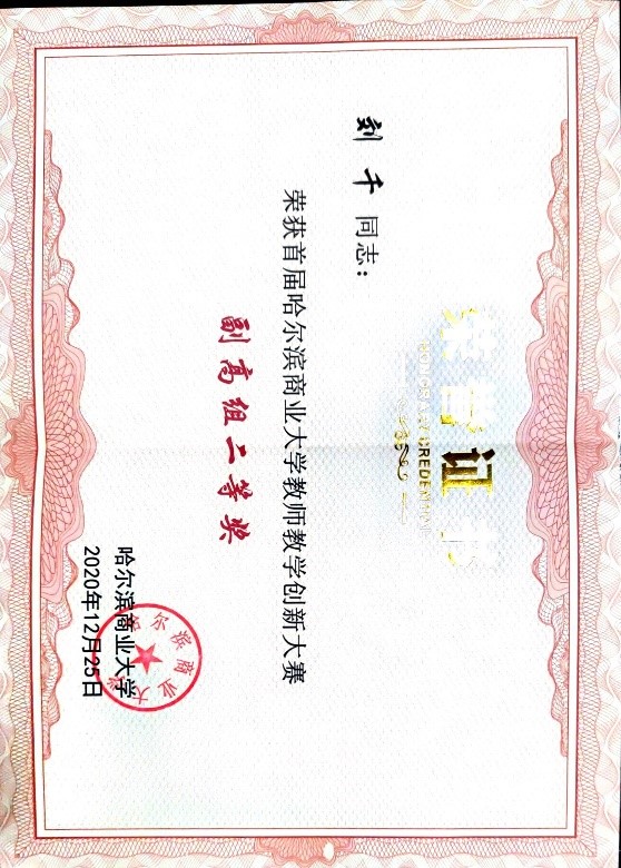 哈尔滨商业大学青年教师教学竞赛获奖二等奖、三等奖、优秀奖