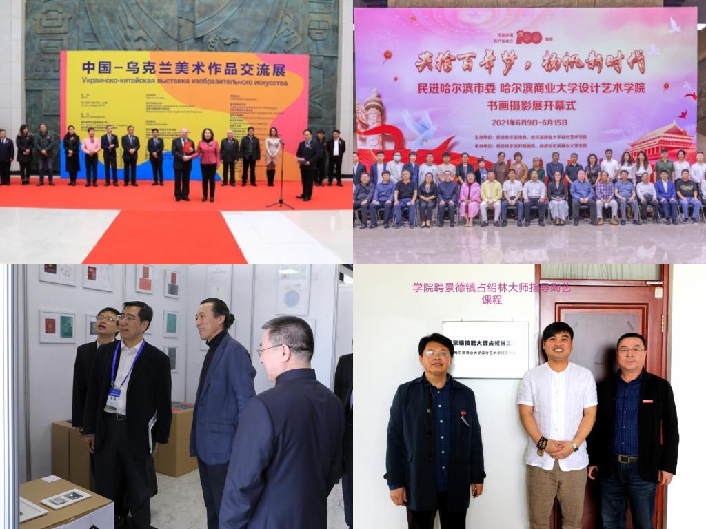 2019年11月,设计艺术学院主办“中国——乌克兰美术作品交流”展。2021年6月,学院教师参加由民进哈尔滨市委、哈尔滨商业大学设计艺术学院主办,民进哈尔滨开明画院、民进哈尔滨商业大学支部承办的“共绘百年梦,扬帆新时代——庆祝中国共产党成立100周年书画摄影展”。2018年,学院领导陪同教学评估专家在设计艺术学院参观学生毕业设计展览,视觉传达教研室主任尚震老师为专家进行了详细的讲解。学院聘国家级技能大师占绍林指导陶艺课程并建立陶艺工作室,占绍林是国家级技能大师、全国技术能手、全国五一劳动奖章获得者、全国非遗专家数据库成员。