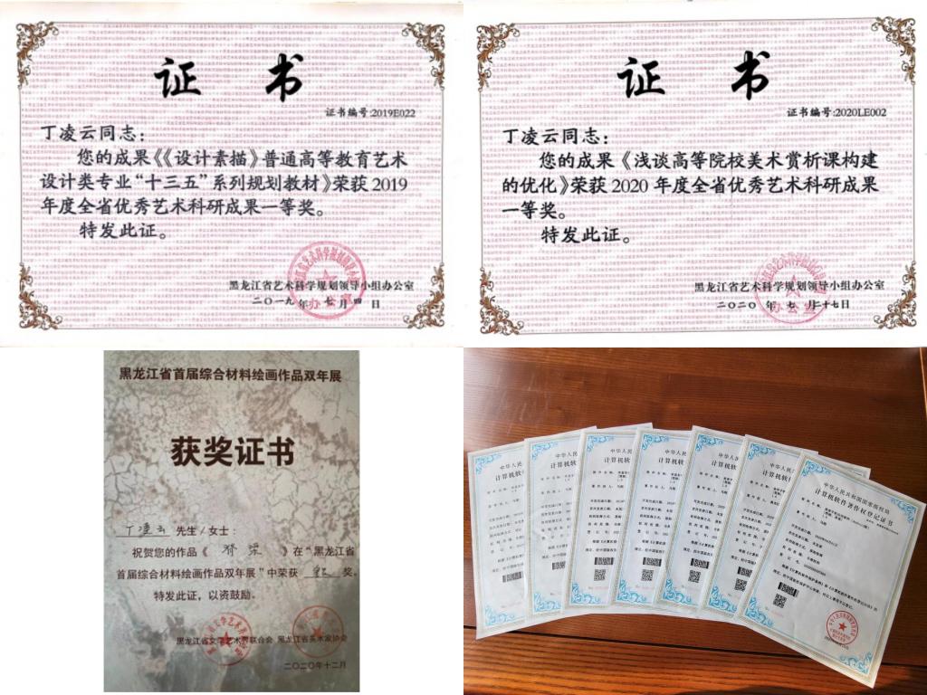 学院教师获得批各级科研成果奖励百余项,2019年8月,院长王宝成作品《哈尔滨保卫战》入选黑龙江重大历史题材创作工程,并被黑龙江省博物馆收藏;副院长丁凌云2019年获全国教育(科研)论文大赛教研成果论文评比全国一等奖、2020年和2019年获黑龙江省优秀艺术科研成果一等奖;刘丹老师获得黑龙江省第十九届社会科学优秀成果;王同旭老师获2020年度黑龙江省优秀艺术科研成果一等奖;欧阳安老师2019年获黑龙江省优秀艺术科研成果一等奖;孙丽丽老师获2017年度黑龙江省优秀艺术科研成果一等奖。