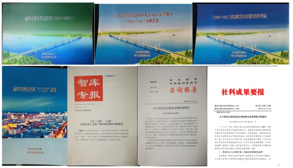 学院充分发挥学科及各研究方向的专业优势,围绕商业网点规划、自贸区建设、招商引资、产业图谱等服务地方经济,先后完成了50余项政策建议和决策咨询报告,其中35份得到国家和省市有关领导批示。编制完成发展规划30余项,积极为地方政府、企业提供决策咨询。潜心对俄自贸区研究,努力提升龙江对外开放水平,学科服务中国(黑龙江)自贸试验区申请和建设全过程,在自贸区申请阶段,团队全程参与申报材料撰写,并承担《中俄黑河-布拉戈维申斯克跨境经济合作区建设规划》等十余项自贸区专项规划,为黑龙江省各片区申报自由贸易试验区提供了重要材料支撑。