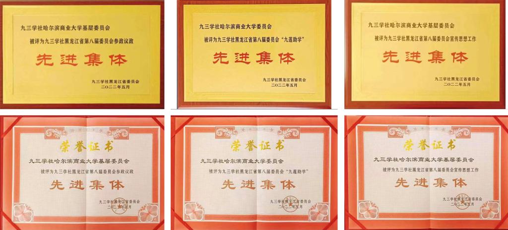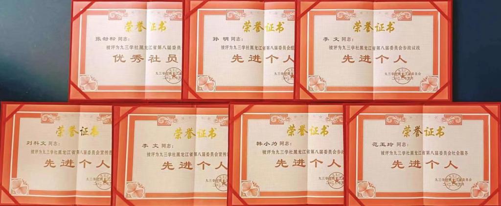 在日前闭幕的九三学社黑龙江省第九次代表大会上,九三学社哈尔滨商业大学基层委员会被评为“九三学社黑龙江省第八届委员会参政议政先进集体”“九三学社黑龙江省第八届委员会宣传思想工作先进集体”和“九三学社黑龙江省第八届委员会‘九莲助学’先进集体”,张劲松同志荣获“优秀社员”荣誉称号,孙明、李文、刘科文、韩小为、范玉玲等五位同志分别荣获组织工作、宣传思想、参政议政、社会服务“先进个人”荣誉称号。