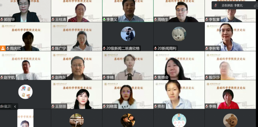 在庆祝哈尔滨商业大学建校70周年之际,为搭建与校友的沟通交流平台,集聚校友资源,让更多校友参与、融入学院人才培养和学科专业建设,实现共同发展,基础科学学院发起成立了学院校友论坛,并于9月6日下午线上举行了校友论坛成立仪式暨首场讲座。副校长李景义出席仪式并致辞,基础科学学院200余名师生参加会议。会议由基础科学学院院长王桂清主持。