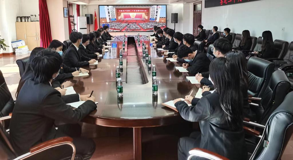 10月16日,中国共产党第二十次全国代表大会在北京人民大会堂开幕。为第一时间学习党的二十大精神,30名校院两级“青马工程”学生骨干代表在行政楼三楼会议室集中收看了党的二十大开幕会盛况,其他“青马工程”学员和团员青年通过网络平台等方式自主收听、收看了大会,认真聆听党的二十大报告。