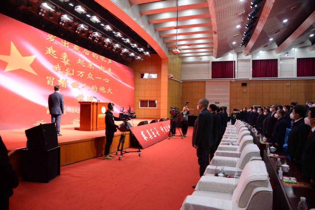 上午9时30分,庆祝大会在雄壮的国歌声中开幕!