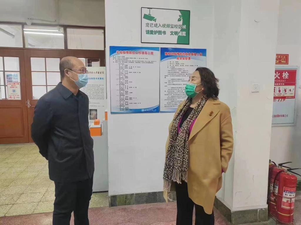 为加强校园安全防范,排查校园安全隐患,化解安全风险,3月17日,校党委书记孙先民、校长郑秋鹛、校党委副书记刘吉昌、副校长姜国峰、副校长赵大伟带领办公室、保卫处、后勤管理处、学生处、教务处、学生工作部等部门工作人员对学校学生公寓、学生食堂、实验室、校内商服、体育馆、图书馆、部分学院等部位的安全情况进行大检查。
