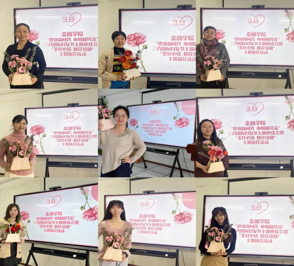 座谈会后,金融学院开展了“美好心情,如花绽放”插花活动,女教职工们以自己灵巧的双手、独特的审美,将多彩的花卉精工裁剪,整合造型,错落有致、别具心裁地组合到一起,一个个精美别致的花篮就这样诞生了,构成了一幅幅独特而又饱含深情的插花作品。娇艳的花朵辉映着女教师们灿烂的笑容,扑鼻的花香衬托出她们优雅的气质,插花活动让广大女教职工在感受美、欣赏美、创造美的过程中增进了交流、陶冶了情操,放松了心情,提升了审美情趣,达到了“愉悦心情,快乐工作”的目的,大大提高了女教职工的校园归属感和生活幸福感。插花作品完成后,大家手捧鲜花,记录下这属于自己节日的美丽瞬间。