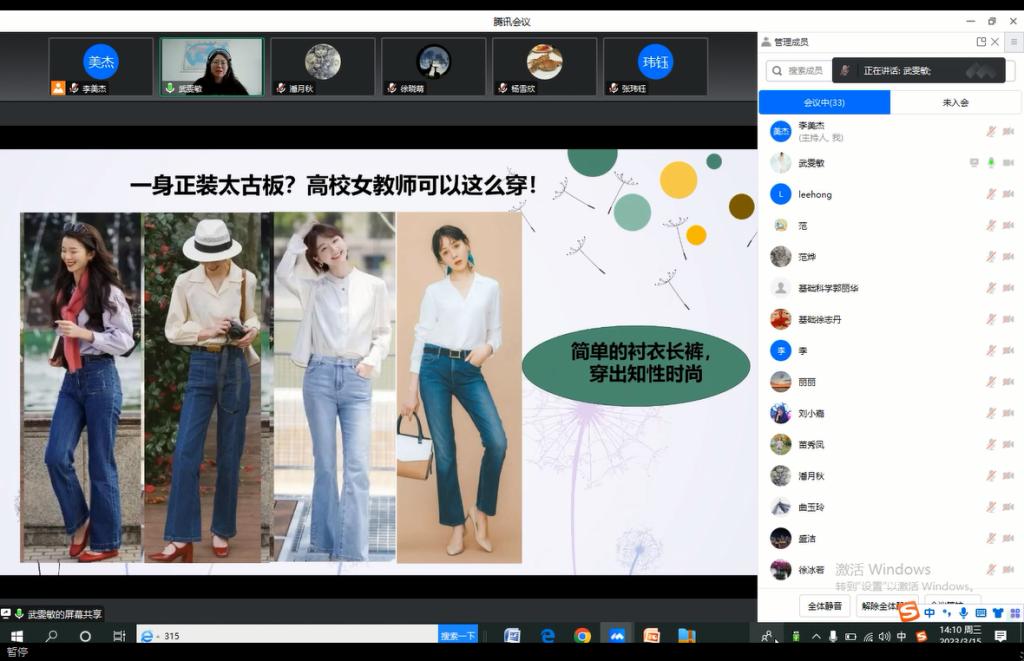 工会举办的“礼行雅韵 向美而生 悦享芳华” 魅力女性课堂与近40位女教师云端见面。活动旨为提升女性教职员工的个人魅力,提高生活品质,提升女教职工的幸福感。讲座由工会副主席潘月秋主持,教务处武雯敏老师作为主讲嘉宾,从仪容仪表礼仪、化妆小技巧、穿衣搭配、发型打理等方面介绍了现代职业女性美妆和服饰搭配小技巧,帮助女教工从外在美化个人形象,变得更加气质优雅、自然美丽。