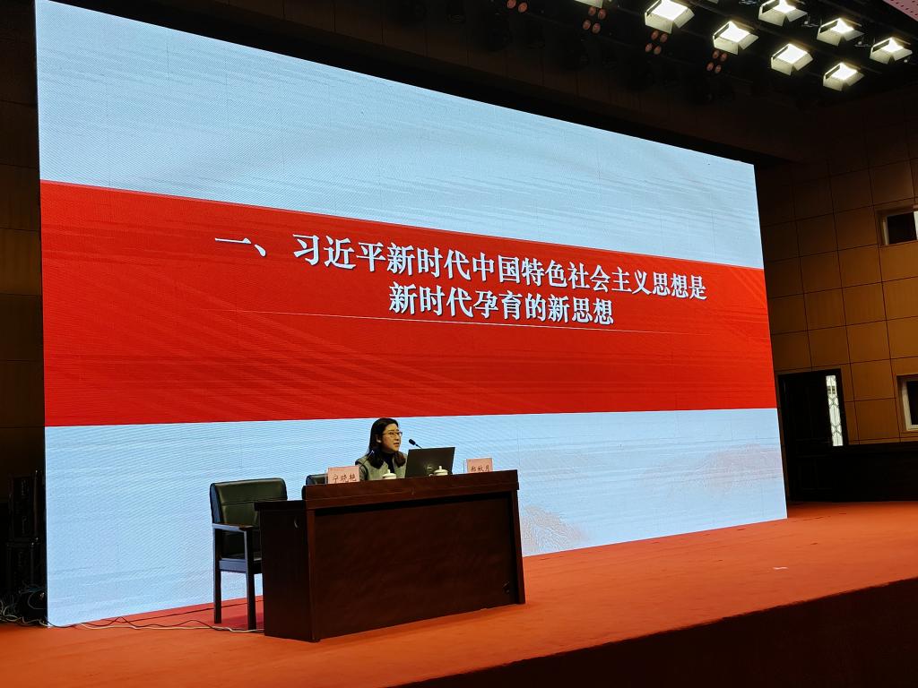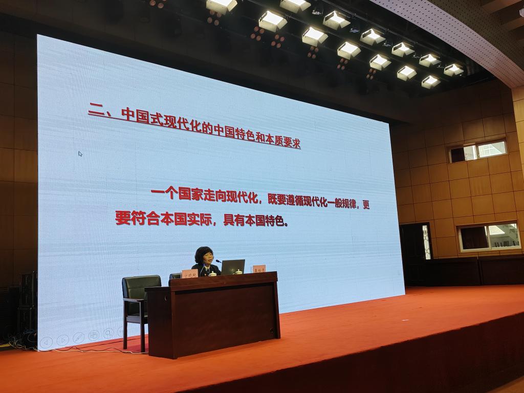 丁东宇以《全面学习领会习近平新时代中国特色社会主义思想》为题,围绕习近平新时代中国特色社会主义思想的产生创立、科学体系和学习方法三个方面进行了全面介绍和系统讲解。裴桂清以《以中国式现代化全面推进中华民族伟大复兴》为题,聚焦深刻理解中国式现代化从哪里来、中国式现代化的中国特色和本质要求、全面建设社会主义现代化国家必须牢牢把握的重大原则等三个方面,作深入细致地讲解和阐释。郑秋月以《马克思主义中国化时代化新的飞跃》为题,系统介绍习近平新时代中国特色社会主义思想的产生背景、重要地位、主要内容、科学体系,着重围绕如何深刻理解和准确把握马克思主义中国化时代化新的飞跃进行剖析解读。