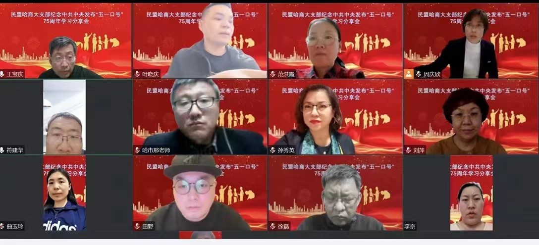 4月27日,民盟哈商大支部以“矢志不渝跟党走 携手奋进新时代”为主题召开纪念中共中央发布“五一口号”75周年学习分享会。会议由民盟哈商大支部副主委周庆欣主持,支部全体委员及盟员代表参加活动。
