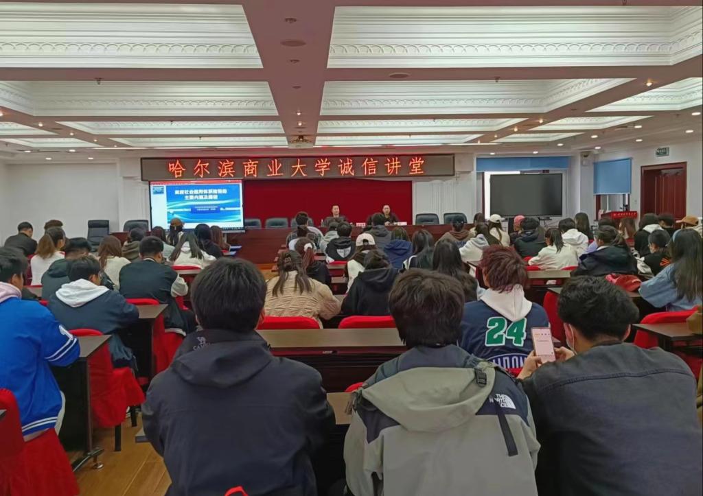 4月28日上午,我校“诚信大讲堂”系列讲座之“政府社会信用体系建设的主要内涵及路径”在A区行政楼612会议室举行。哈尔滨市营商环境建设监督局社会信用体系建设处处长黄明辉作主题报告。财政与公共管理学院、食品工程学院、管理学院、商务学院、旅游烹饪学院等学院师生代表参加报告会。党委宣传部副部长许蕾主持会议。