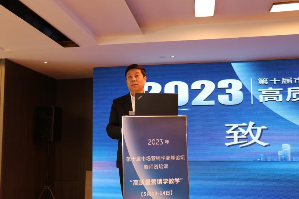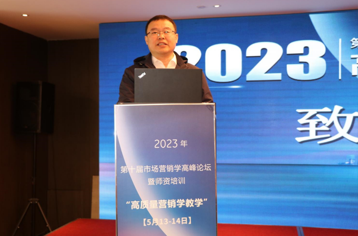 5月13日-14日,在教育部高等学校工商管理类专业教学指导委员会的支持下,由中国高等院校市场学研究会、清华大学出版社主办,哈尔滨商业大学、中国高等院校市场学研究会产教融合专业委员会、黑龙江省市场学会承办的第十届市场营销学高峰论坛暨师资培训——“高质量营销学教学”在我校召开。此次会议的主题是“高质量发展”,来自北京大学、中山大学、吉林大学、中国海洋大学、中央财经大学、浙江工商大学、华东理工大学、中南财经政法大学、哈尔滨商业大学、浙江财经大学等国内高校的200余位专家、教师通过线下线上参加论坛。我校党委书记孙先民教授出席开幕式并致辞。论坛开幕式由中国高等院校市场学研究会副会长、华东理工大学商学院教授景奉杰主持。