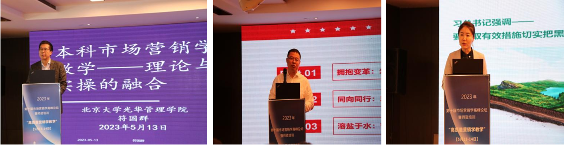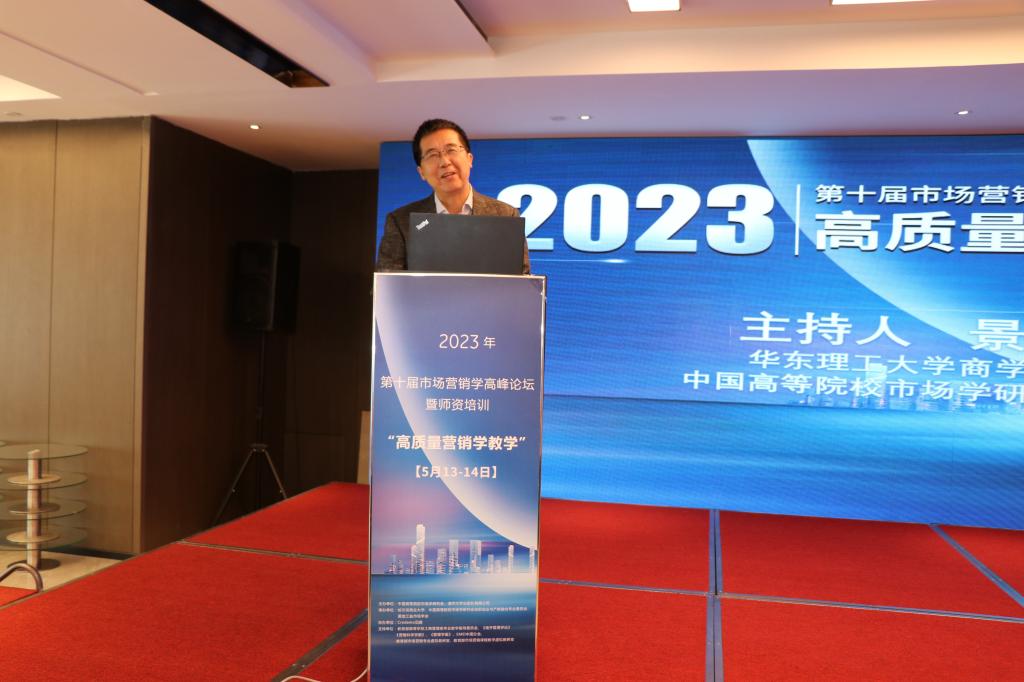中国高校市场学研究会会长、北京大学光华管理学院博士生导师符国群教授代表中国高校市场学研究会致辞。符国群高度评价了市场营销学高峰论坛暨师资培训在推动市场营销专业人才培养和教学改革创新中的作用。