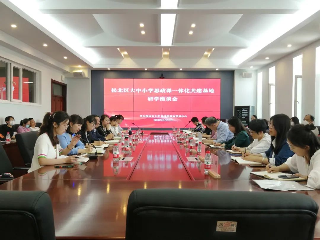 参观结束后,全体研学教师就如何开展大中小学思政课一体化建设进行了座谈交流。座谈交流会由马克思主义学院院长于景洋主持。于景洋表示,2020年9月,哈尔滨商业大学与松北区教育局合作共建了我省首家大中小学思政课一体化建设基地。“共建基地”成立后,坚持以习近平总书记关于教育的重要论述,特别是在学校思政课教师座谈会上的重要讲话精神为指导,持续推进松北区大中小学思政课一体化建设,坚持开展“线下+线上”多种形式的集体备课和研学活动,取得了丰硕成果。下一步,马克思主义学院将总结建设经验,巩固建设成果,推进松北区大中小学思政课一体化建设往深里走,往实里走。“共建基地”将紧紧围绕落实立德树人根本任务,努力在打造研究平台,培育师资团队,产出优质课程,形成研究成果,促进内涵发展,形成长效机制等方面下功夫,力争形成一批实实在在的成果。
