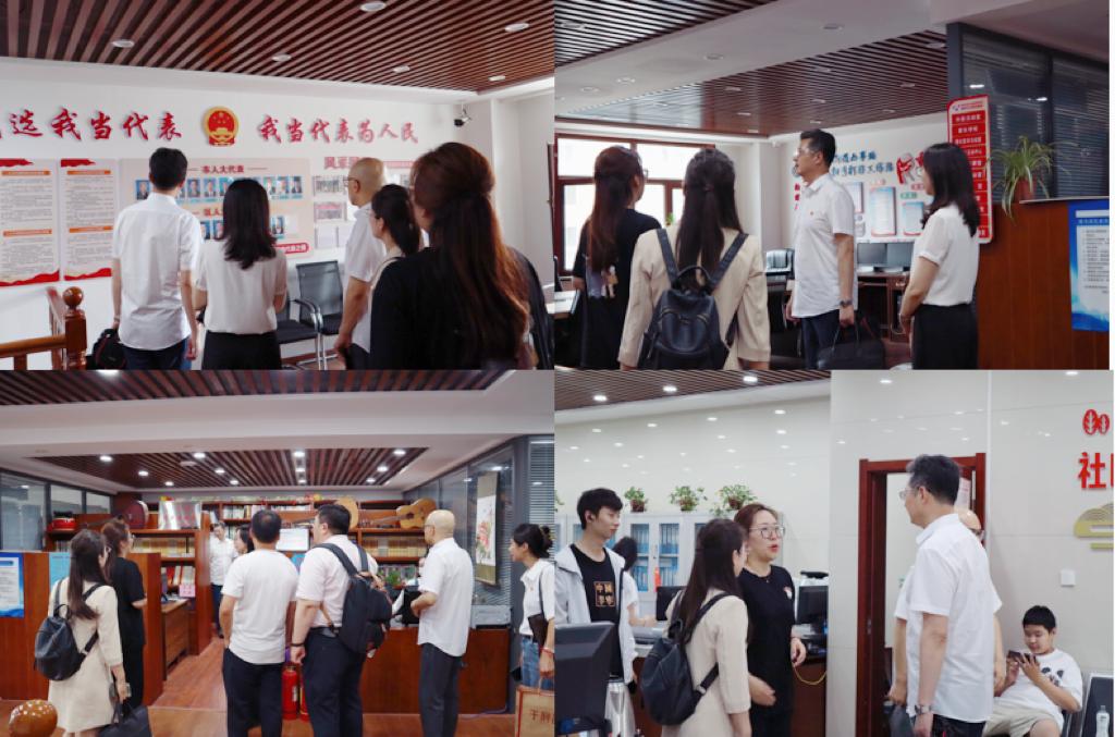 交流研讨后,社区干事陈乐带领师生参观了四明社区新时代文明实践站、心理咨询室、科普活动室、法律援助咨询站、党群服务中心、人大代表联络站等功能区。通过参观学习,党支部全体党员明晰了社区“谋民生之利、解民生之忧”的具体做法。社区工作人员的热情接待和耐心解答,让党支部全体党员更加深入地了解了一线社区工作者把矛盾化解在基层、把群众“急难愁盼”问题解决在基层的创新工作举措。