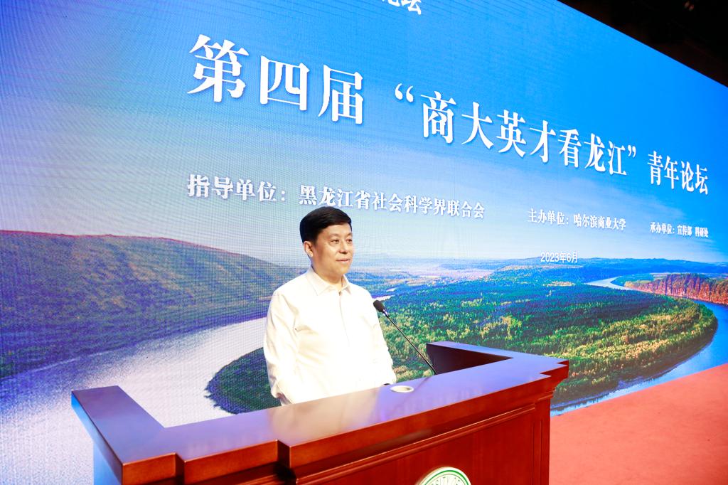 为深入开展学习贯彻习近平新时代中国特色社会主义思想主题教育,进一步贯彻落实习近平总书记对东北地区和我省的重要讲话重要指示批示精神,全面贯彻党的二十大精神、省第十三次党代会精神,结合深化能力作风建设“工作落实年”解放思想专项工作要求,在省社会科学界联合会指导下,依托“龙江社科论坛”,6月27日,学校在专家公寓国际报告厅举办第四届“商大英才看龙江”青年论坛。省社科联学会工作部部长马琳;省委第20巡回指导组副组长张继财,成员尹增宝、田京熙、高正、李振国到会指导。校党委书记孙先民,校长郑秋鹛,副校长李晓梅、李景义、王巍、赵大伟,纪委书记卢伯松出席论坛。党委常委、宣传部部长贾妮燕主持论坛。
