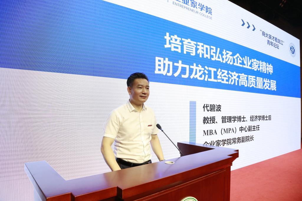 我校MBA(MPA)中心副主任、企业家学院常务副院长代碧波教授以《培育和弘扬企业家精神 助力龙江经济高质量发展》为题作报告。