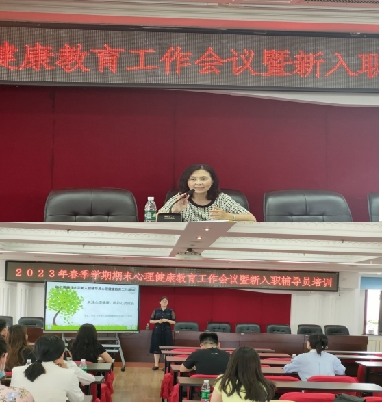 为进一步加强我校思想政治工作,推动学生工作队伍心理教育管理工作规范化,提升心理健康教育工作的实效性及针对性,切实增强辅导员履职能力与业务水平,6月25日下午,学生工作部在行政楼612会议室召开2023年度春季学期期末心理健康教育工作会议暨新入职辅导员培训。会议由学生工作部部长金菊主持,各学院党委(党总支)副书记、二级心理辅导站站长及2023年度新入职辅导员参加培训。