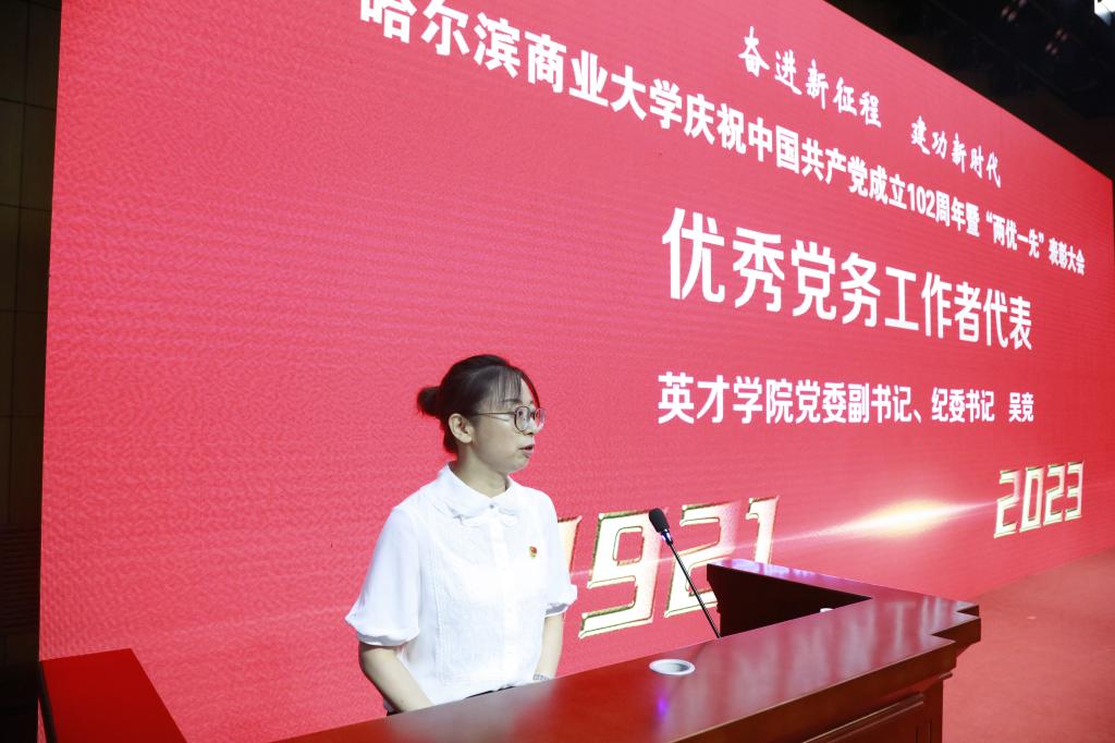 优秀党务工作者代表,英才学院党委副书记、纪委书记吴竞发言