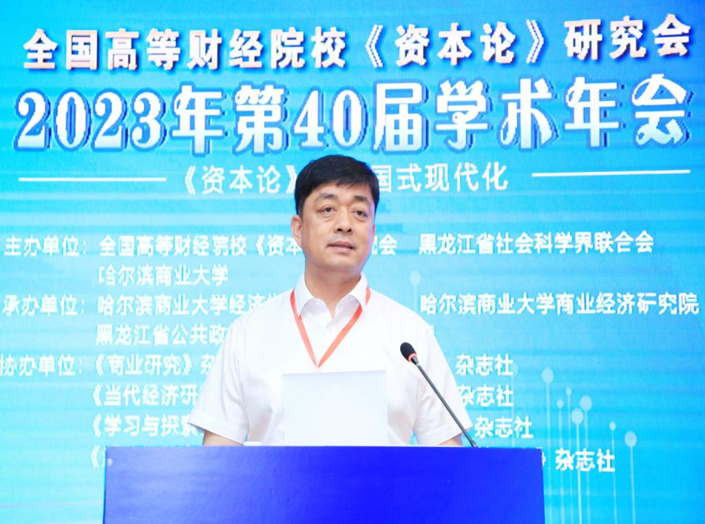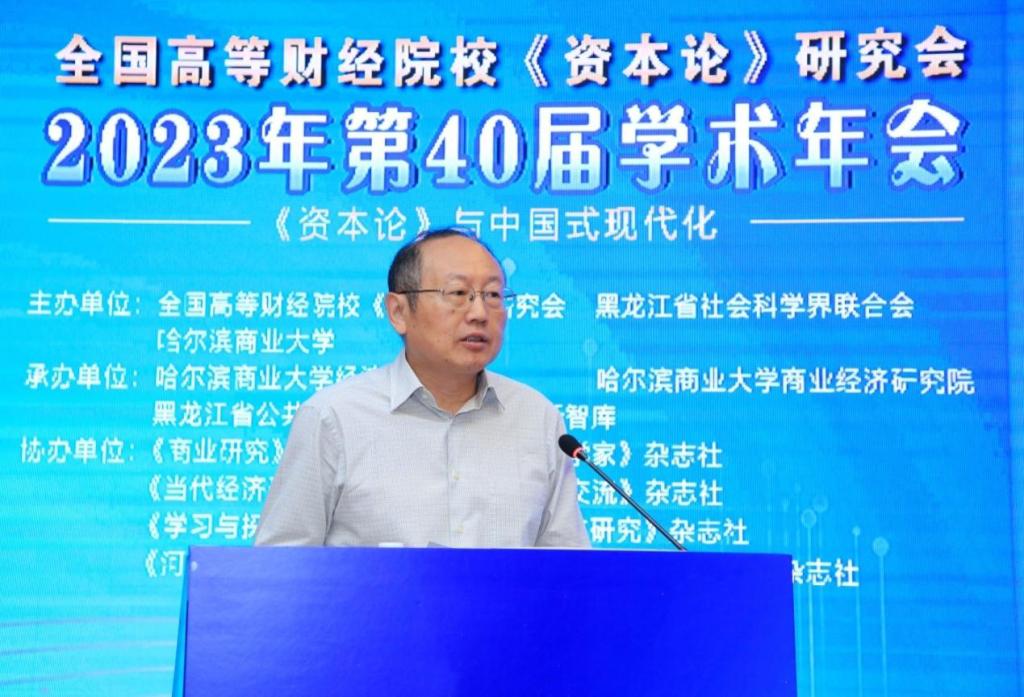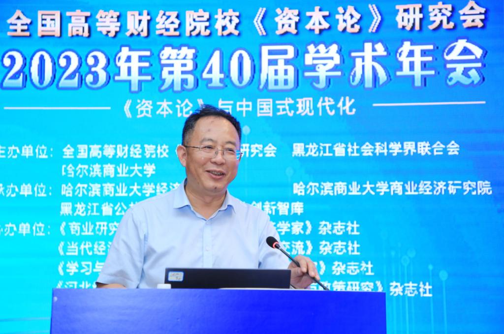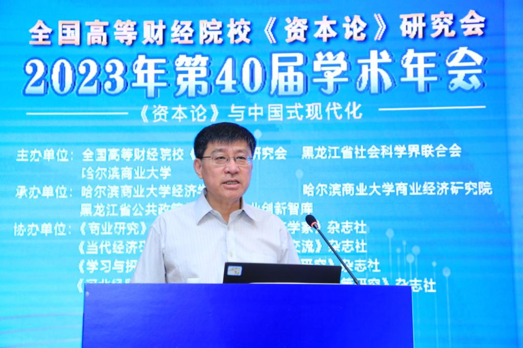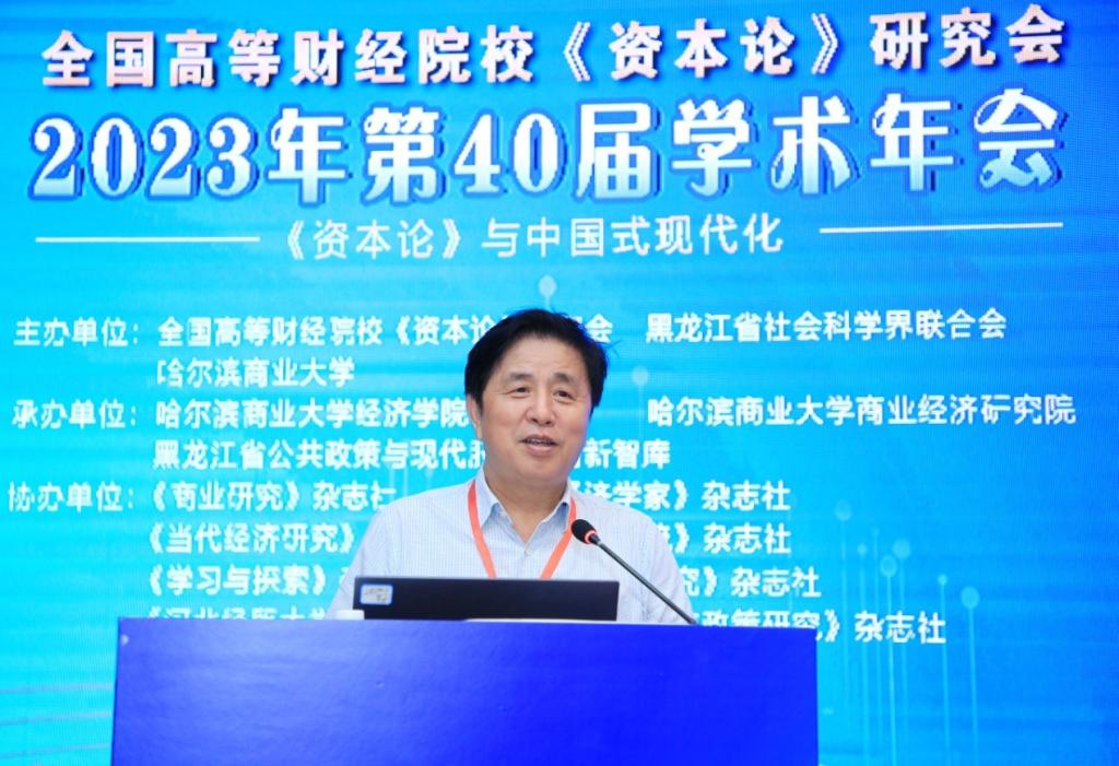 7月14-16日,由全国高等财经院校《资本论》研究会、黑龙江省社会科学界联合会、哈尔滨商业大学联合主办,哈尔滨商业大学经济学院、哈尔滨商业大学商业经济研究院、黑龙江省公共政策与现代服务业创新智库联合承办的全国高等财经院校《资本论》研究会2023年第40届学术年会在哈尔滨召开。本届学术年会以“《资本论》与中国式现代化”为主题,旨在运用马克思主义世界观和方法论,探讨中国式现代化的发展规律、《资本论》与中国式现代化的实现路径等核心内容,为坚持和发展新时代中国特色社会主义政治经济学作出理论阐释和学术贡献。学术年会包括开幕式、主旨报告和分组讨论、大会发言、小组汇报及闭幕式五个单元。开幕式由我校副校长王巍教授主持。