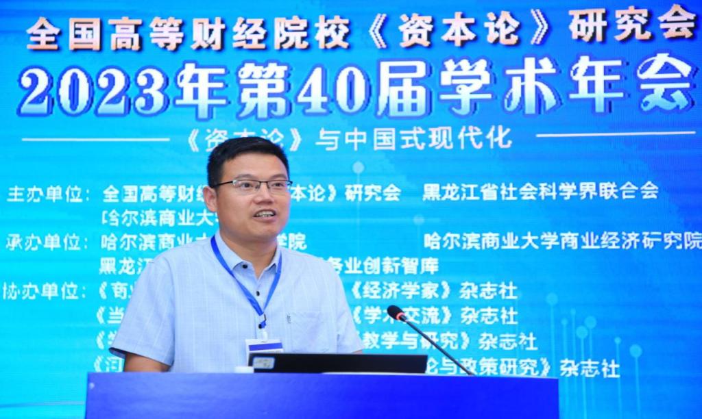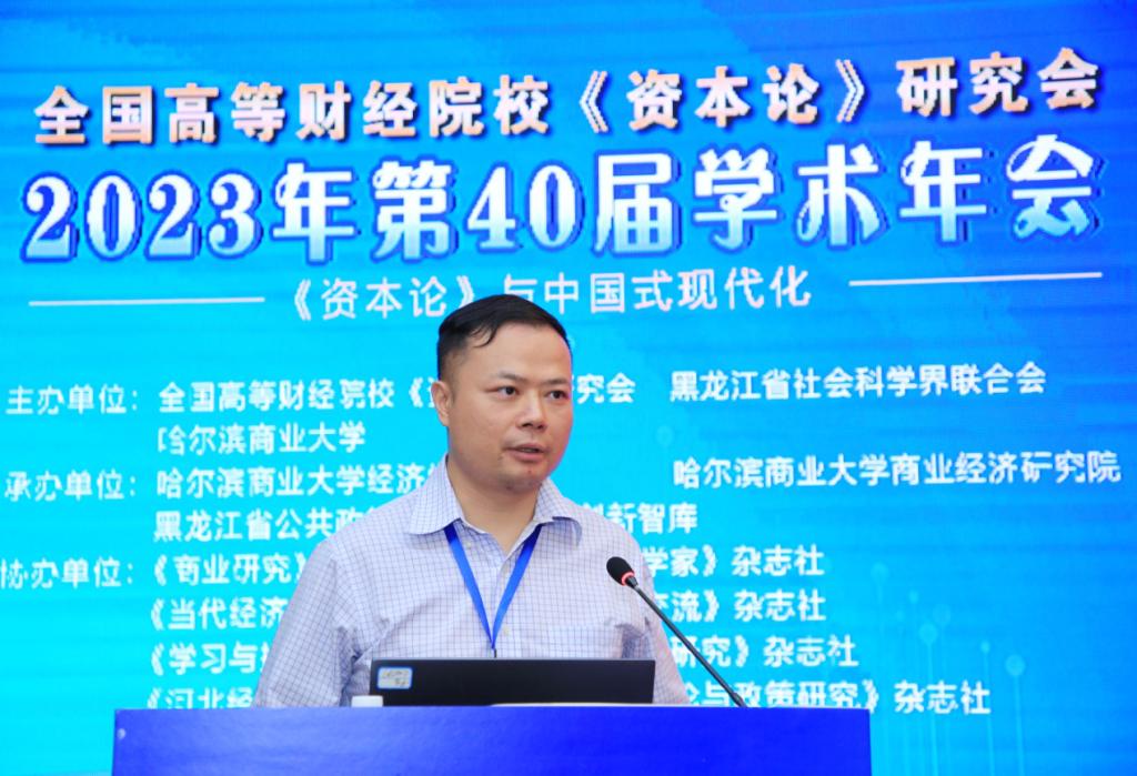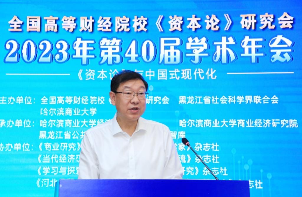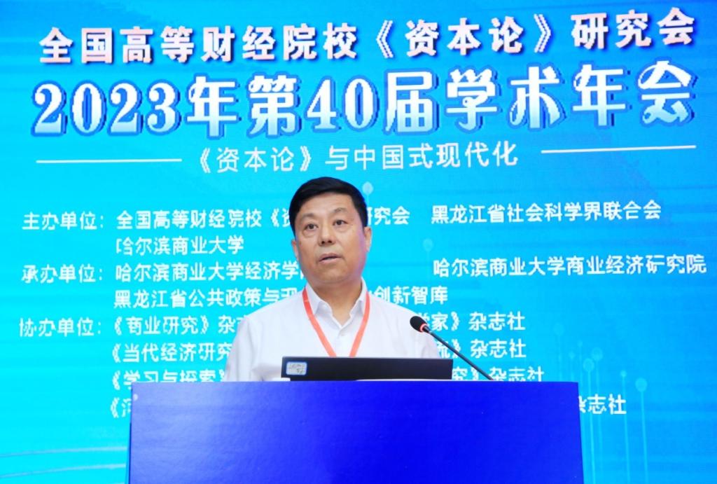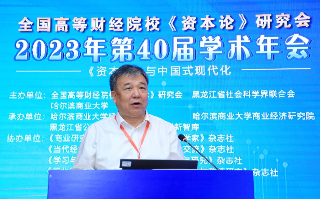 7月14-16日,由全国高等财经院校《资本论》研究会、黑龙江省社会科学界联合会、哈尔滨商业大学联合主办,哈尔滨商业大学经济学院、哈尔滨商业大学商业经济研究院、黑龙江省公共政策与现代服务业创新智库联合承办的全国高等财经院校《资本论》研究会2023年第40届学术年会在哈尔滨召开。本届学术年会以“《资本论》与中国式现代化”为主题,旨在运用马克思主义世界观和方法论,探讨中国式现代化的发展规律、《资本论》与中国式现代化的实现路径等核心内容,为坚持和发展新时代中国特色社会主义政治经济学作出理论阐释和学术贡献。学术年会包括开幕式、主旨报告和分组讨论、大会发言、小组汇报及闭幕式五个单元。开幕式由我校副校长王巍教授主持。