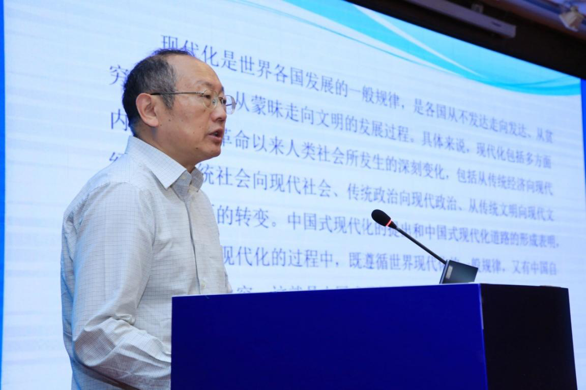 全国高等财经院校《资本论》研究会会长、西南财经大学丁任重教授以《中国式现代化的现实底色》为题作报告。丁任重以现代化的一般规律为切入点,从中国式现代化是基于中国国情的现代化、是立足于中国道路的现代化、是彰显中国方案的现代化三个层面论述中国式现代化的现实底色,即中国式现代化既遵循世界现代化的一般规律,又有基于中国国情的鲜明特色。