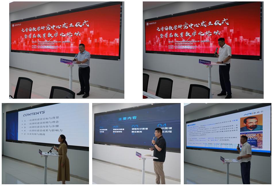 我校刘阳松教授、智慧树网韩永明经理和爱威尔项征总经理分别围绕国家一流课程建设、AI知识图谱新形态教学资源建设和元宇宙技术赋能教育发展作交流报告。