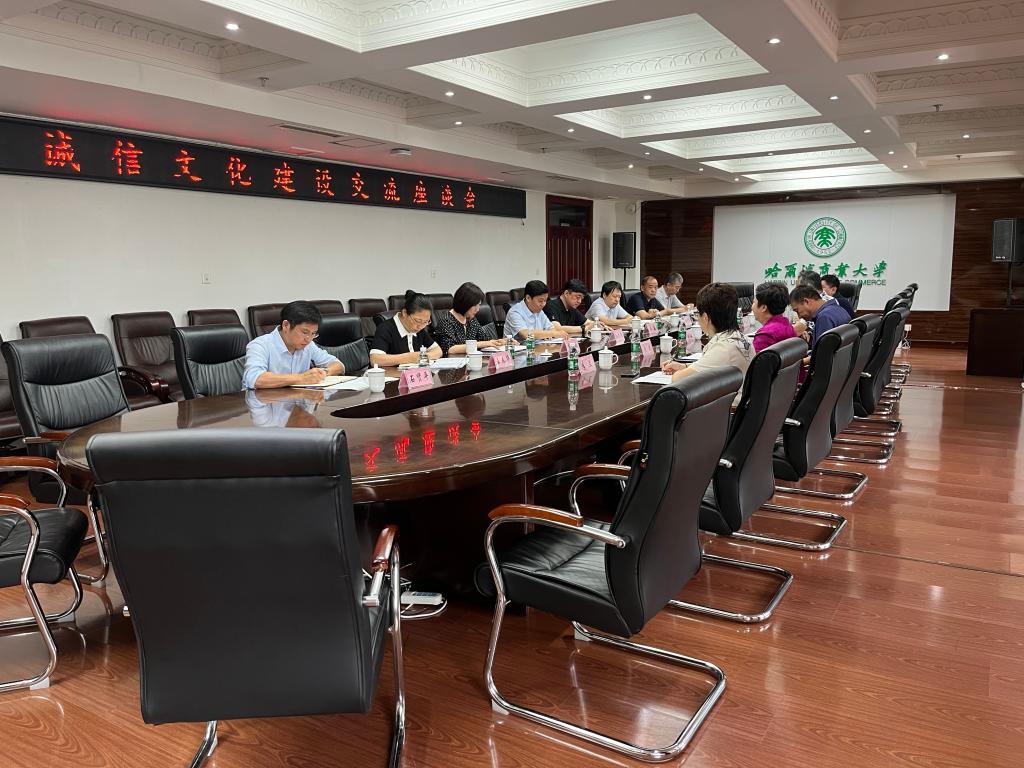 8月11日,黑龙江省社会保障行业协会联合党委书记刘歆,黑龙江省社会保障行业协会联合党委副书记、黑龙江省诚信建设促进会会长张波一行5人来我校围绕诚信文化建设开展调研交流。我校党委书记孙先民、副校长王巍,宣传部、教务处、学生工作部、金融学院、法学院、商业经济研究院等相关部门负责人参加调研。