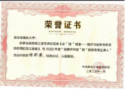 翻开厚厚的《党支部工作记录》,“三会一课”纪要,谈心谈话记录,每一页都承载着她踏实严谨的工作作风。组织支部党员观看先进典型事迹、交流学习心得、开展党日活动,不打折扣地认真落实主题教育要求的学习任务。她结合专业打造特色党支部,创新开展“录播微课”和“我和我的祖国”等党日活动,深入贫困村和现代化新农村考察调研、将理论与实践相结合,推动主题教育往心里走、往深里走、往实里走。经过支部全体党员的不懈努力,以政治建设为统领,整合教学、科研、社会资源 “有渠道、有基地、有平台、有场所”的“四有立体化”高校基层党支部特色工作机制初显成效。她所带领的党支部被教育部确立为首批新时代全国高校党建工作“样板支部”,被省委教育工委授予首批黑龙江省高校“百优”党支部称号。