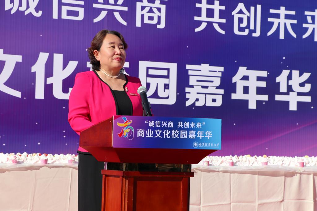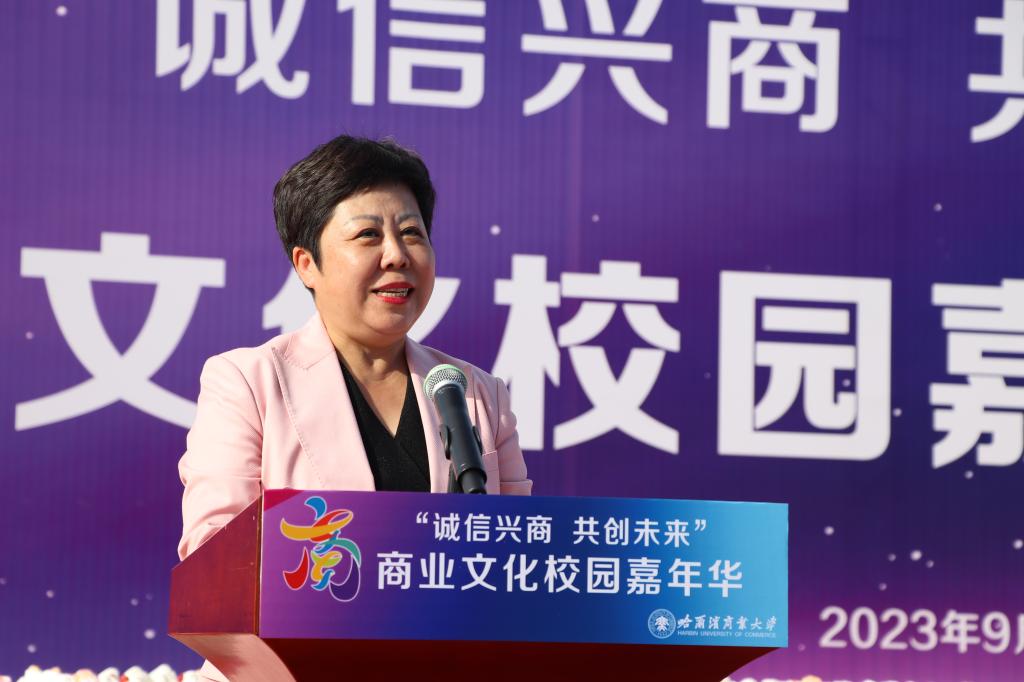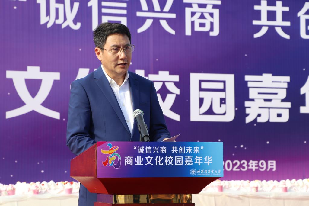 孙先民在致辞中指出,哈尔滨商业大学作为新中国第一所多科性商业大学,始终秉持“大商铸才、大雅育人、商雅兼备、经世济民”育人理念,教育引导广大师生牢记最大的“诚”是对党和国家的忠诚,最大的“信”是对中国特色社会主义的信念和信仰,把根深深扎在祖国北疆,立足商科办学特色,深耕商业文化沃土,创新人才培养模式,匠心书写“扎根龙江、兴商富国”的筑梦史、奋斗史。学校将诚信教育作为“立德树人”有效抓手,在省内高校中率先创新推进诚信文化建设“六个一”工程,形成了学术研究集群,在理论研究、制度建设、品牌构建、体系建设、载体创新、服务社会等方面取得了积极成效。孙先民指出,学校将以商业文化校园嘉年华活动为纽带牵引,吸引更多有识之士和市场主体,更加自觉地以文化力量滋养新时代文明实践,投身中国特色社会主义伟大事业。我们要增强历史自觉、坚定文化自信,大力弘扬诚信文化,助力诚信社会建设,为区域经济社会发展提供强大思想引领和精神力量;聚焦主责主业、坚持协同发展,促进教育链、人才链与产业链、创新链有机衔接,探索形成更多可供复制推广的新经验范式;保持战略定力、坚定发展信心,切实担负起服务国家战略、助力龙江发展的时代使命,为全面建设社会主义现代化国家龙江新篇章作出新的贡献。